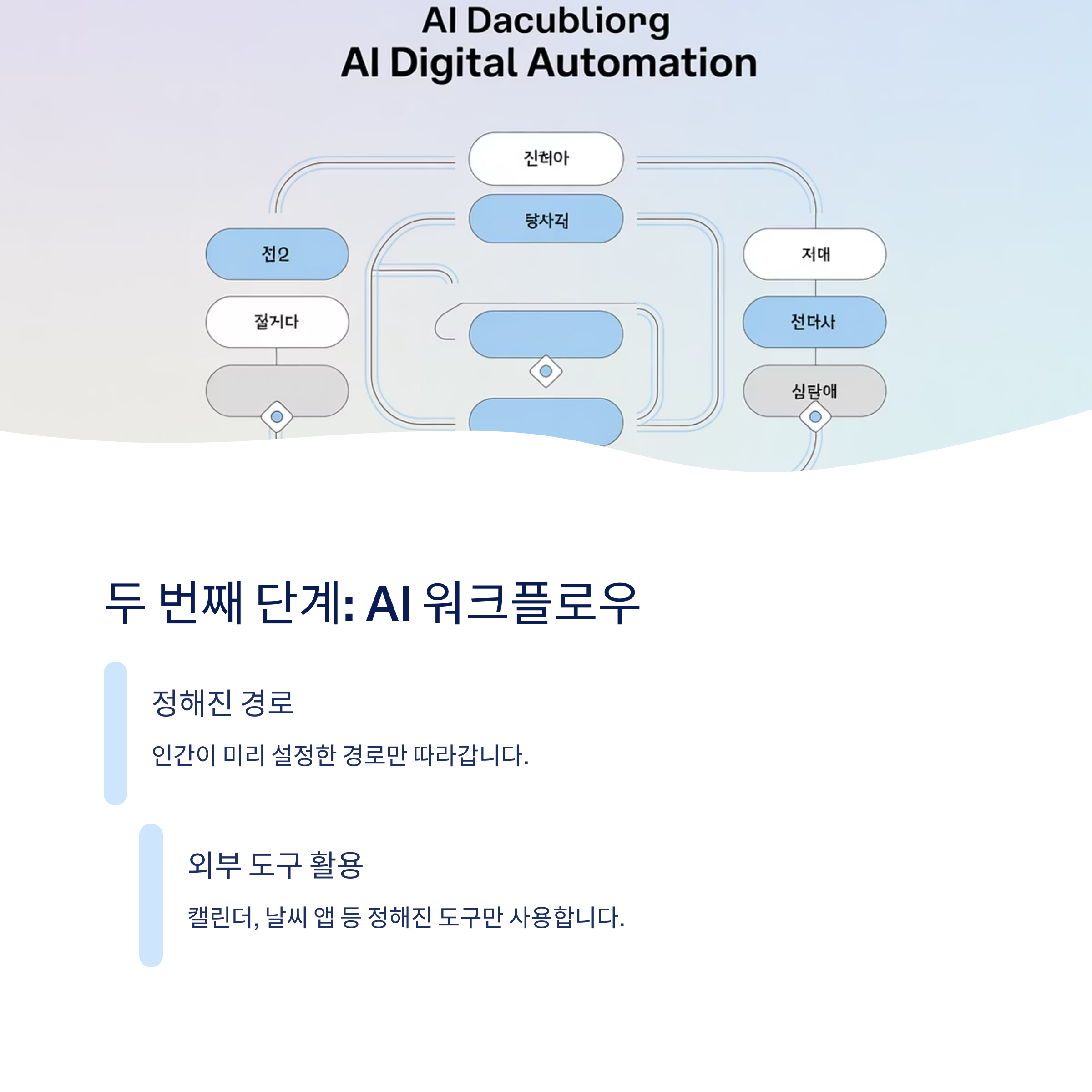 이 모든 과정은 제가 미리 설정한 경로대로만 움직이는, 전형적인 'AI 워크플로우'입니다.